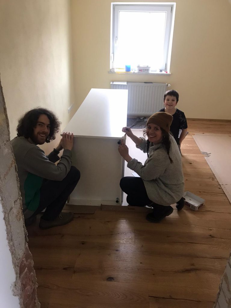 Teamwork auch beim Möbelaufbau