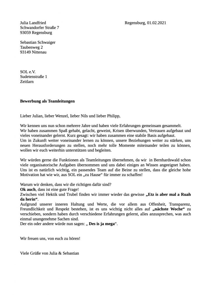 Eine der schönsten Bewerbungen